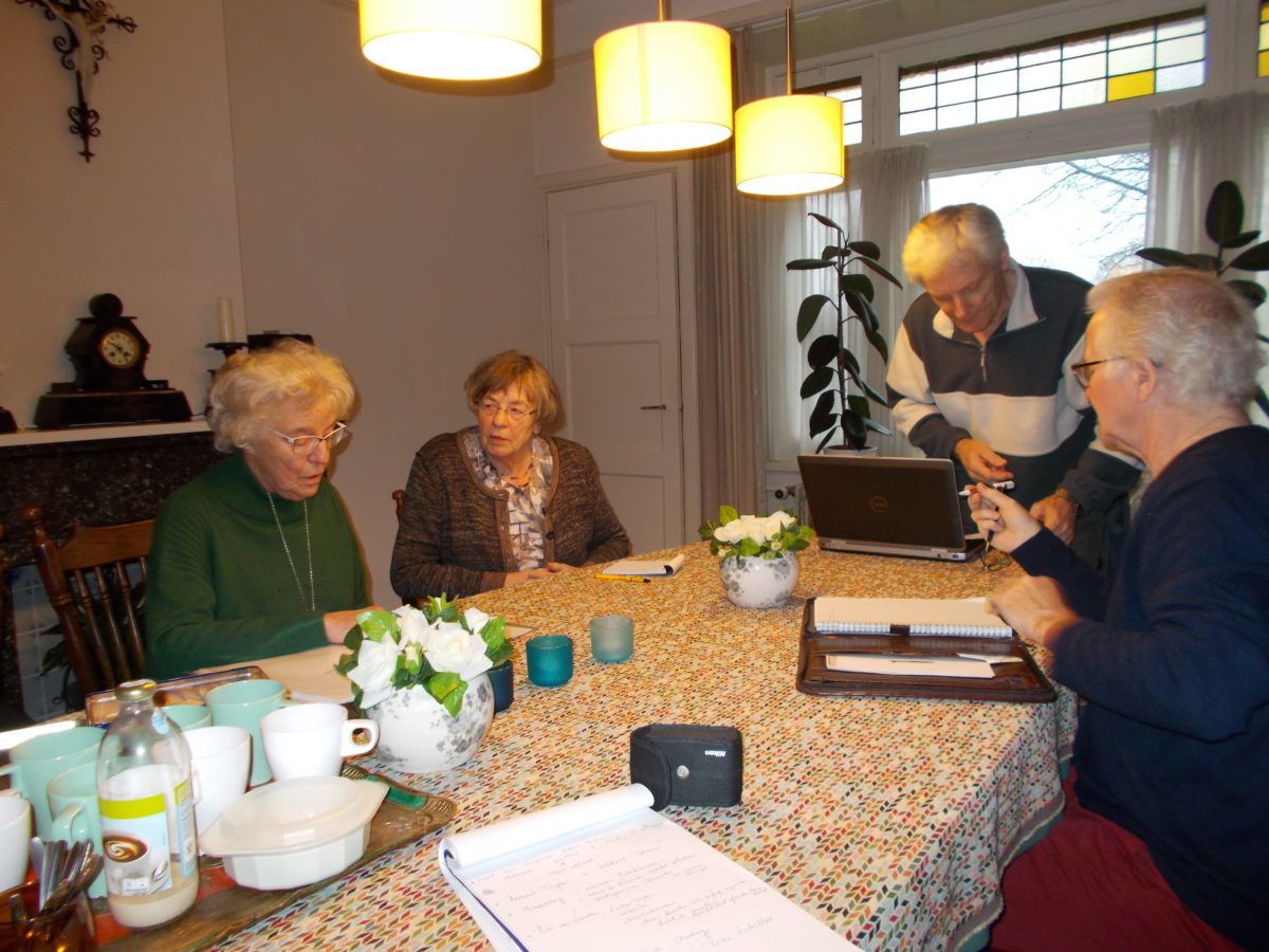 Het was weer gezellig druk op onze inloopochtend dinsdag 21 november. Op bezoek was mevrouw Annie de Rijk uit Dreumel wiens  moeder in de 20-er jaren van de vorige eeuw pensionaire was bij de zusters in Engelen. Ze had een ingelijst handwerk meegebracht dat haar moeder in de Engelense periode had gemaakt.