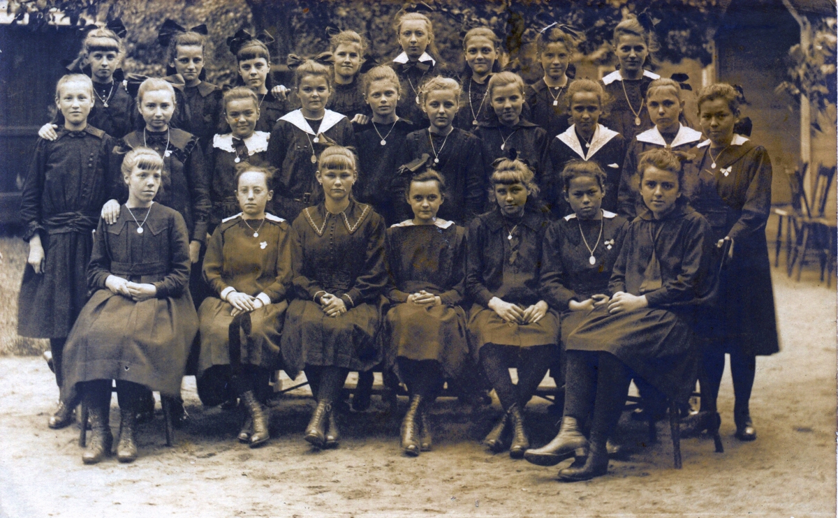 Ca. 1925. Groepsfoto met zittend op de onderste rij, tweede van links, de moeder van Annie de Rijk